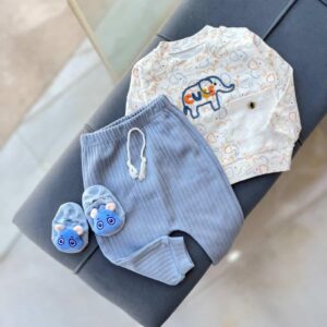 بلوز شلوار طرح شیر برجسته بیسکویتی سه رنگ کد ۵۵۲