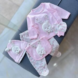 ست نوزادی دخترانه صورتی پفکی پاپیون کد ۷۹۸