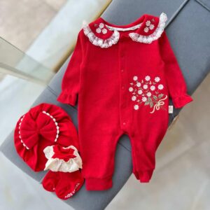 سرهمی دخترونه بیسکویتی قرمز گلدوزی کد ۳۱۳