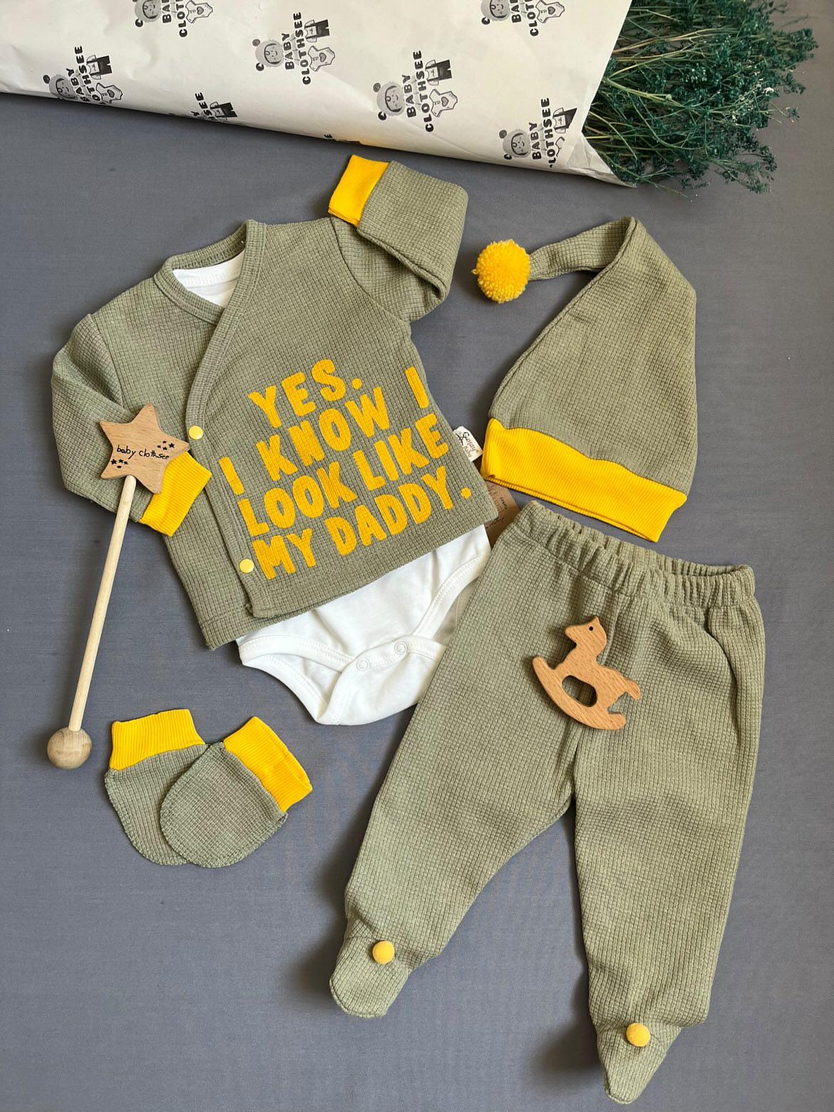 ست بیمارستاتی صدرصد پنبه پنج تیکه وارداتی 🇹🇷شامل بادی بلوز شلوار کلاهدستکش صدرصد پنبع در دو رنگ تک سایز صفر تا سه ماه